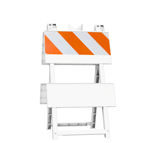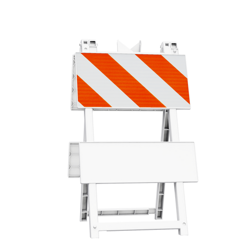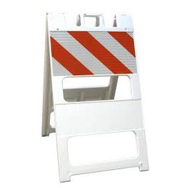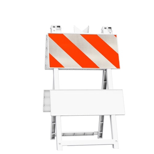 The Omni A-Frame is an alternative to the regular A-Frame Barricade designed to be longer lasting, stronger, and more universal since it accepts Plasticade I-Beam Boards, Plasticade 1" x 8" Boards, thin rails, panels or wood board. The set comes with two solid walled legs that can take one or two boards. The Boards included in the sets are I-Beam, a high quality polyethylene board, available in EG, HIP or DG in various striping designs.