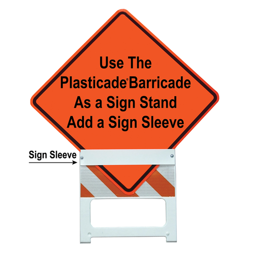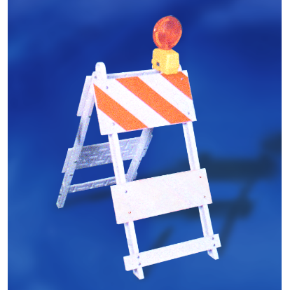The Safetycade is a traffic safety device designed to be more durable and flexible than other barricades. The top upright panel can be personalized with a custom legend, and the bottom panel comes with striped sheeting, both available in EG or HIP for extra visibility and protection for vehicles and workers.