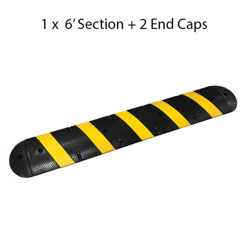 Premium Textured Rubber Speed Bump , 20ft. = 3 x 6' Sections + 2 End Caps | Standard Quality Speed Bump and Premium Speed Bump Component Parts also available separately. Installation Hardware sold separately.