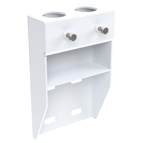 Steel Wall Mount Bracket for Pipe Safety Railing Dual Pocket , White | The Steel Dual Pocket Wall Mount Bracket is designed to securely anchor two parallel safety rail pipes to walls or structural surfaces. Ideal for terminating or extending railing systems, this bracket ensures a robust connection and helps maintain alignment in high-traffic or industrial environments.