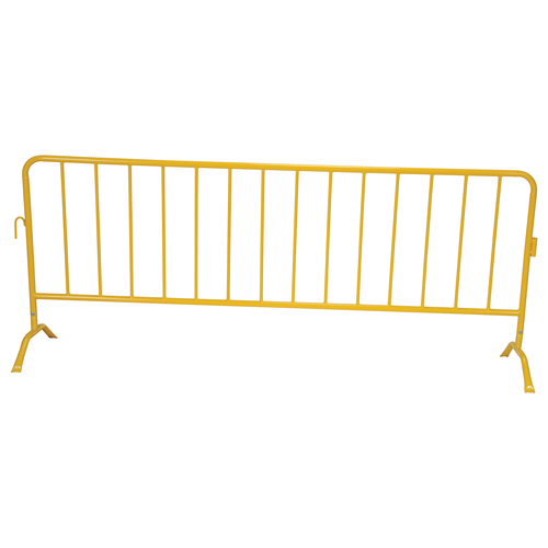 Steel Crowd Control Interlocking Barrier with Flat Feet 101-3/16 In. , Yellow | The Steel Crowd Control Interlocking Barrier is a durable, portable solution for managing foot traffic and creating secure perimeters in commercial, industrial, or public event environments. With a clean, functional design and interlocking capability, these barriers are ideal for guiding personnel, restricting access, or organizing queues. Each unit is designed for quick setup and repositioning to accommodate changing needs.