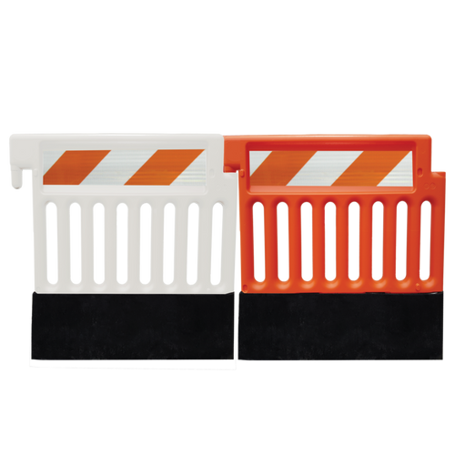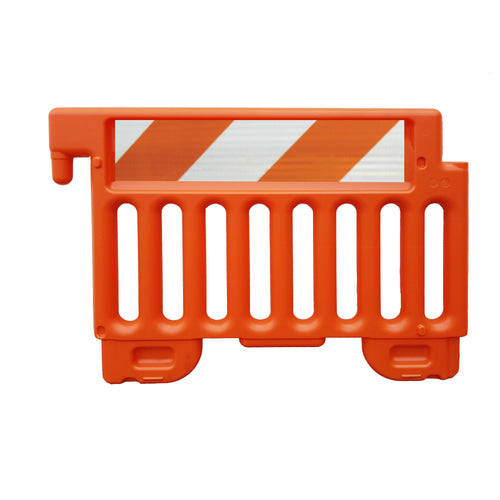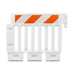 This Polyethylene Barricade is designed for extra-durability. The ideal option for any crowded space that needs delineation, it also offers protection for pedestrians and drivers. Available in orange or White with two panels for 3M EG or HIP striped sheeting. The interlocking system and heavyweight makes them stable, wind-resistant and hard to misplace. This Barricade is quick to place and arrange in linked lines that prevent delineation miss-placement. This barricade comes ready to be used so you don’t have to worry about losing time putting it together or buying missing pieces. Made in the USA