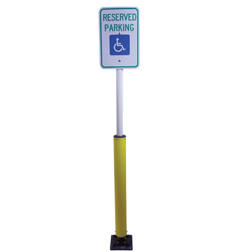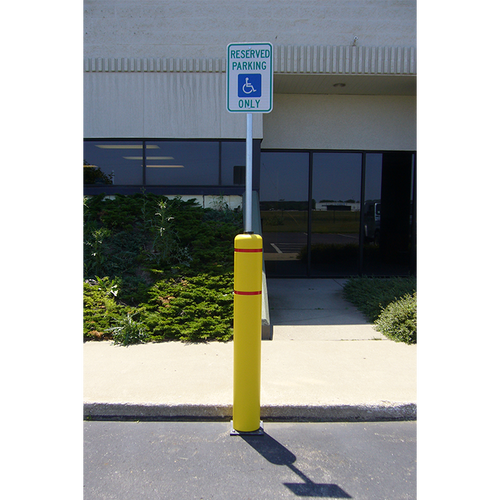 Our 4" Handicap Parking Bollard Kit's main feature is to create a resilient handicap parking bollard that is strong enough to eliminate traditional wheel stops. With this kit, you will forget about damaged sign posts and vehicles. Its yellow color makes it highly visible from long distances. It has an incredible rebounding bollard technology that prevents damage to the sign and vehicles as well as surrounding concrete. Its installation is easy and quick and ensures long-lasting protection.