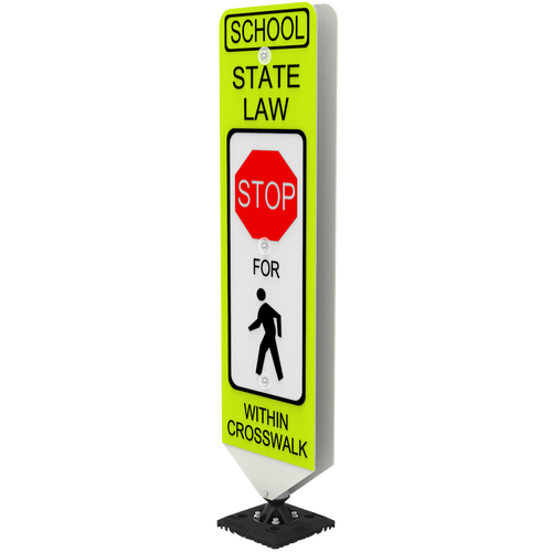 OurCrosswalk signdoes not include its base, so if you want to add it to your purchase, you will find the Surface Mount Quick Release Base at $28.90 here or the Quick Release Portable Base at $71.90 here.