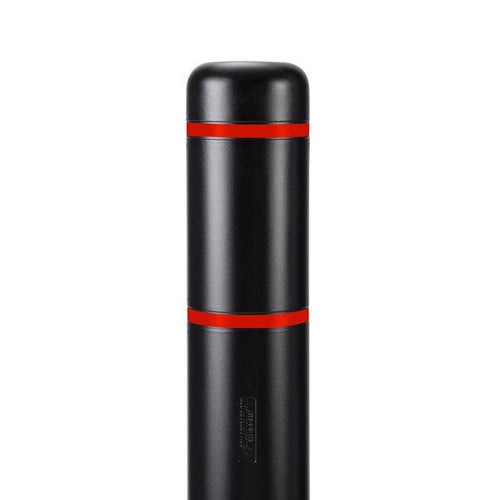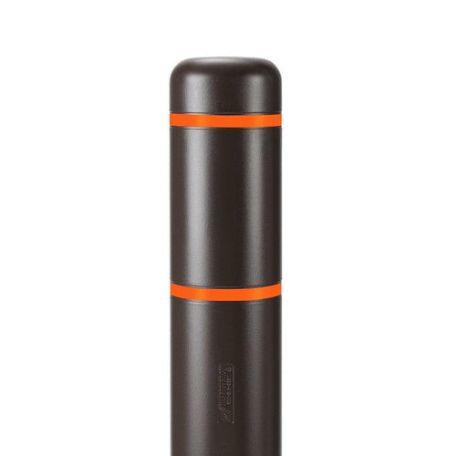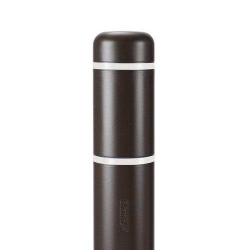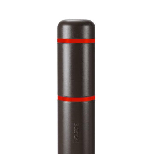 The unit has a 1-5/8 steel-pipe attached to a steel base that can be anchored to asphalt, concrete, or natural ground. The steel post is hidden underneath our 7” Reflective Bollard Cover.