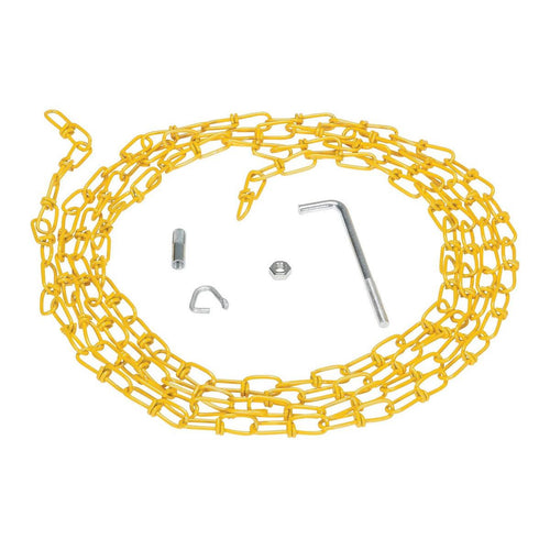 Steel Double Loop Coil Chain with Hanger – 15 Ft. Yellow Same dependable chain-and-hanger system with a bright yellow finish for high visibility.