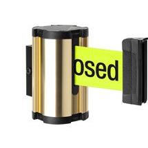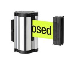 Wall-mounted Retractable Belt Barriers give you all the benefits of a portable stanchion without taking up valuable floor space. Wall-mounted Safety Barriers attach to the wall with inconspicuous connectors. Simply twist the screw on the connector to release and move to another location. Ideal for cash register closures, or closing off aisles, corridors, and doorways for cleaning or safety. The retractable belt attaches to a wall receptacle (included) mounted on an opposing wall or directly to a portable stanchion. Includes all hardware.