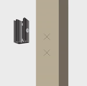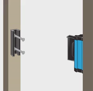 | Determine mounting height and location on wall for Grip Connector, making sure Grip Connector is vertical and that the top surface is level. | Install Grip Connector using two 1½" Flat Head Screws. Drywall anchors should be used if there is not a solid backing in the wall. Some mounting conditions may require different hardware. | Slide Wall Mount into dovetail on the Grip Connector until Grip Connector midpoint is aligned with Wall Mount Mechanism midpoint. Loosen Pan Head Screw on Grip Connector for an easier fit. Then, tighten the Pan Head Screw to secure the unit. | Mount the Wall Receptacle opposite from the Wall Mount using two 1½" Flat Head Screws. Make sure receptacle is level with belt and Wall Mount unit. |