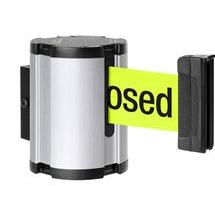 Wall-mounted Retractable Belt Barriers give you all the benefits of a portable stanchion without taking up valuable floor space. Wall-mounted Safety Barriers attach to the wall with inconspicuous connectors. Simply twist the screw on the connector to release and move to another location. Ideal for cash register closures, or closing off aisles, corridors, and doorways for cleaning or safety. The retractable belt attaches to a wall receptacle (included) mounted on an opposing wall or directly to a portable stanchion. Includes all hardware.