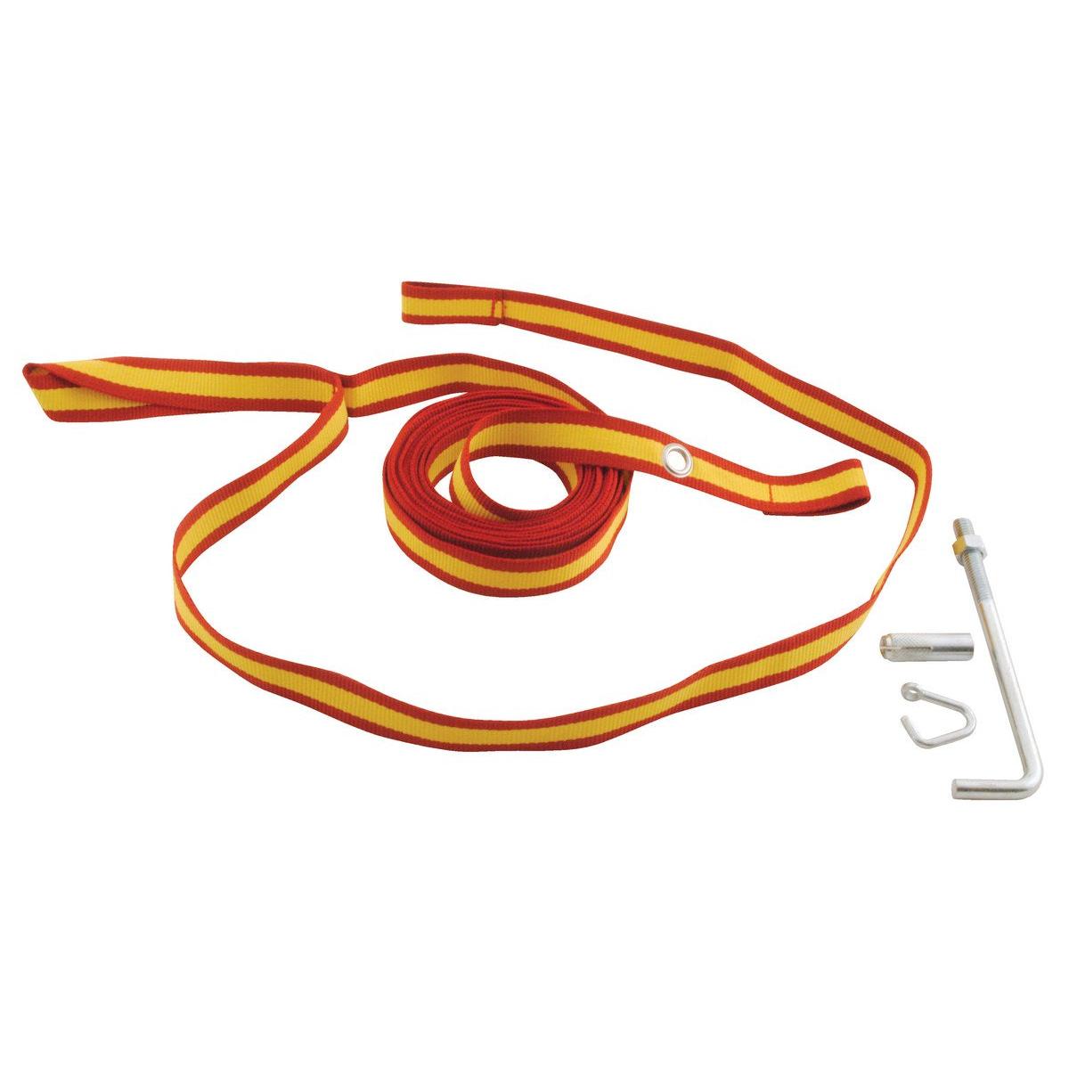 The Nylon Wheel Chock Strap and Hanger Kit is designed to keep wheel chocks organized, accessible, and ready for use at any dock location. Built for convenience and durability, this kit ensures chocks remain secured when not in use while allowing for quick removal and repositioning during operations. The bright yellow and red colors provide visibility for safety compliance and easy identification.