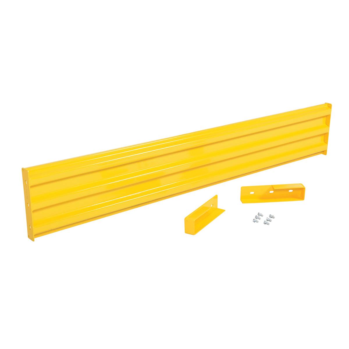 Each rail features corrugated 1/8" steel for superior impact resistance and a powder-coated safety yellow finish for visibility and durability. The drop-in design allows sections to slide easily into post saddles, providing a secure barrier that can be repositioned or expanded as needed.