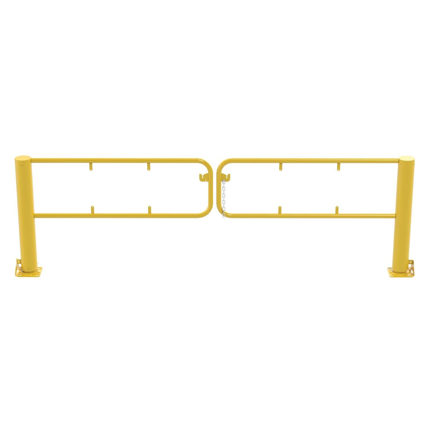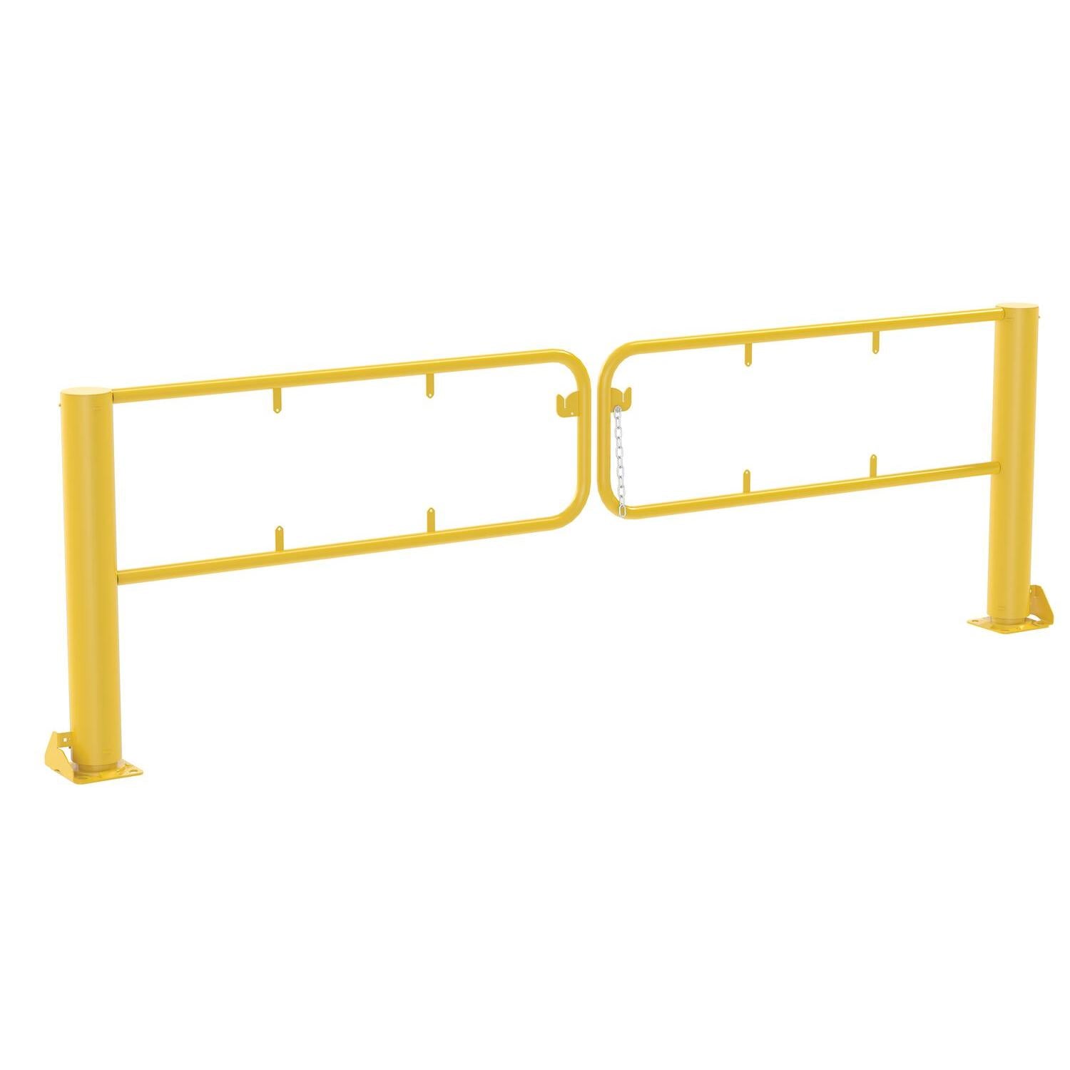 Constructed from rugged steel tubing and finished in a high-visibility yellow powder coat, the gate resists corrosion and withstands harsh industrial environments. Its compact design allows for wall or floor mounting, making it adaptable to a variety of spaces.